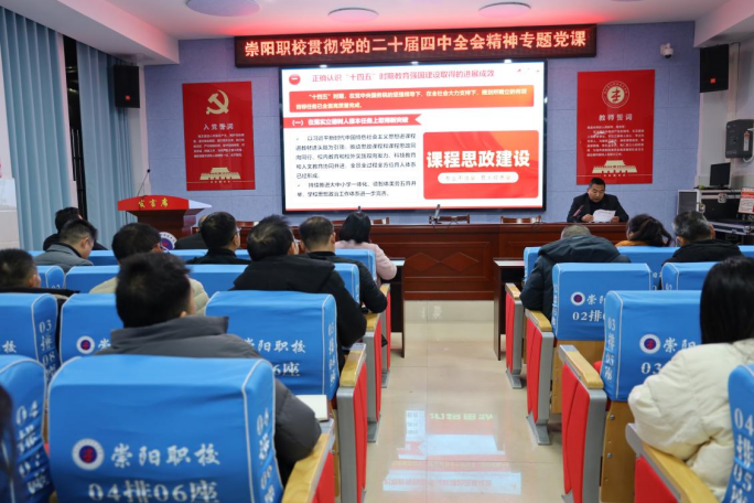 为深入学习贯彻党的二十届四中全会精神,切实把全校党员教师的思想和行动统一到全会部署上来,崇阳职校继11月24日特邀全国最美教师王 ...