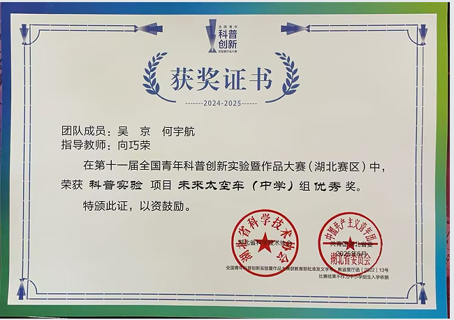 近日,第十一届全国青年科普创新实验暨作品大赛(湖北赛区)圆满落幕,湖北省钟祥市旧口高中传来喜讯,该校吴京、何宇航两名同学在科普 ...