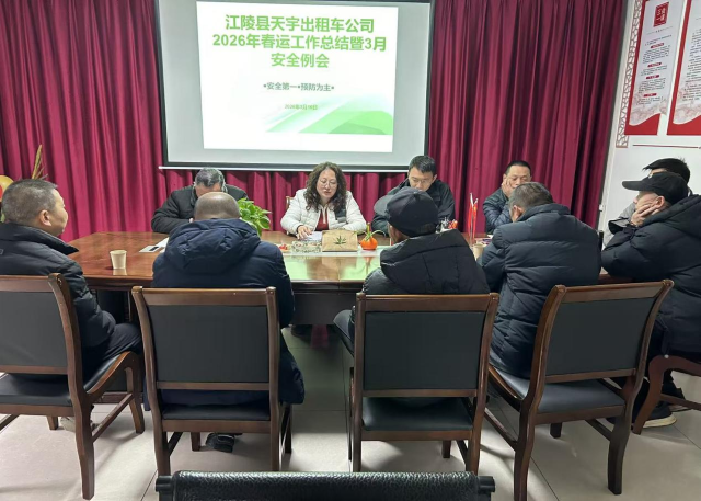 近日,江陵县天宇出租车公司召开2026年春运工作总结暨3月份安全生产工作部署会,县道路运输服务中心相关负责人出席会议。 会议通报 ...