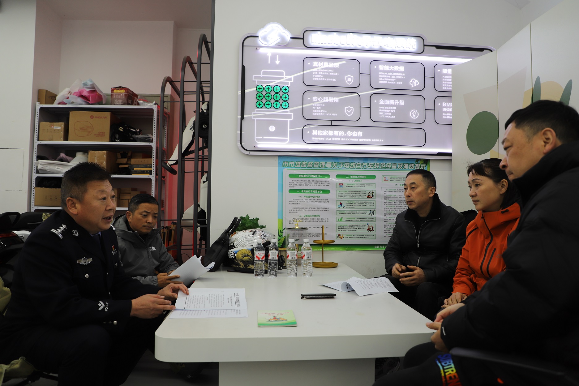11月21日上午,在宜昌市伍家岗区夷陵大道与杨岔路路口的九号电动车专卖店,民警一边与宜昌电动车行业协会负责人交换新国标电动自行车登 ...