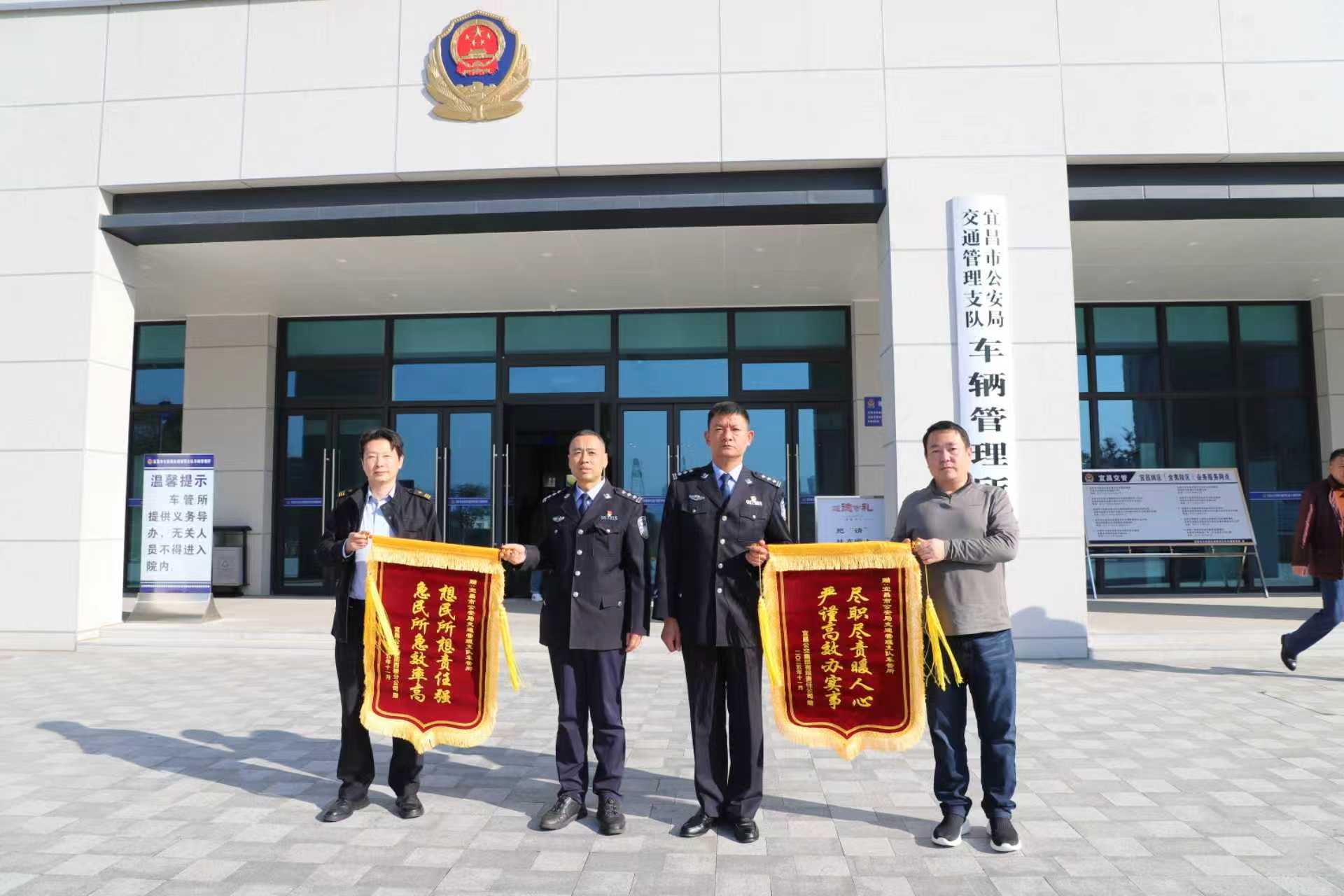11月24日,宜昌公交集团有限责任公司西陵分公司负责人专程来到宜昌市公安局交通管理支队车辆管理所,将两面鲜红的锦旗想民所想责任强 ...