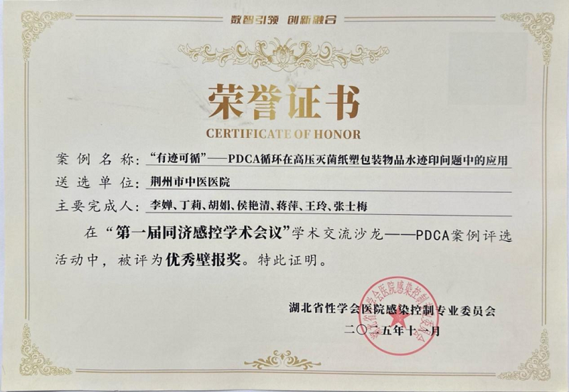 近日,在首届同济感控学术会议期间举办的第三届PDCA案例评选中,荆州市中心医院选送的案例《门之守护,手术室院感防控秘钥——运用PDCA ...