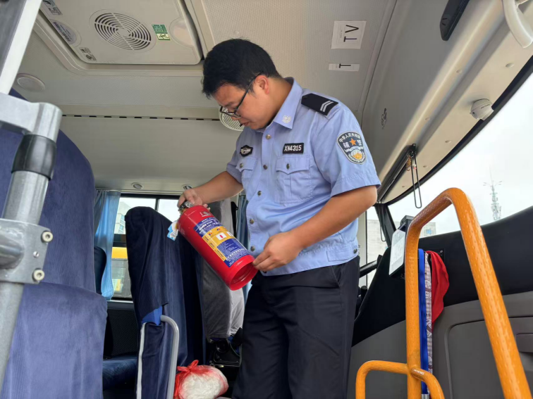同时,民警还要求校车公司加强对校车的日常维护保养,及时发现并排除安全隐患,确保校车安全运行。随后,民警还对校车的安全性能、座椅、安全带、灭火器、安全锤、轮胎磨损、雨刮器、灯光、刹车、制动装置以及安全防护设施的配备情况、使用性能进行了核查。