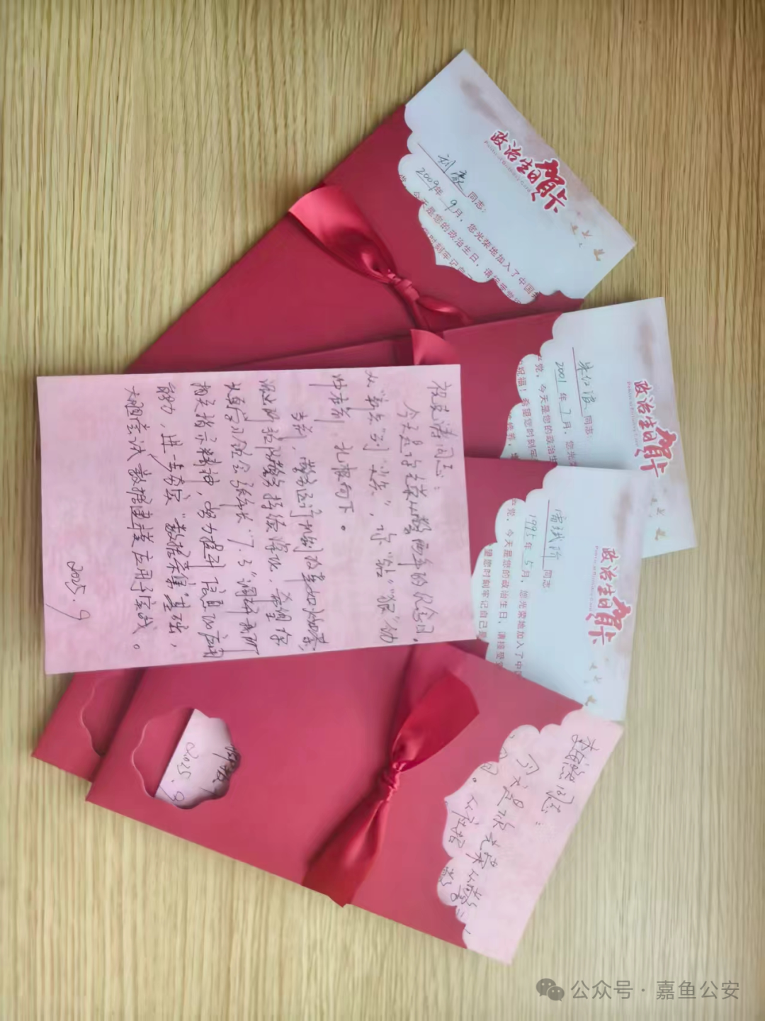 党支部提前为过“双生日”的民辅警定制专属贺卡,从 “政治生日”贺卡到“从警纪念日”贺卡,每张卡片都承载着组织的用心。更特别的是,党支部领导亲自执笔,结合每位民辅警的工作实际与个人特点撰写个性化寄语。寄语中,既有对过往工作成绩的肯定,也有针对基层治理、派出所主防、“情指行”新型警务机制运行等中心工作的殷切期望,让民辅警在翻开贺卡的瞬间,便能感受到组织的关注与认可。