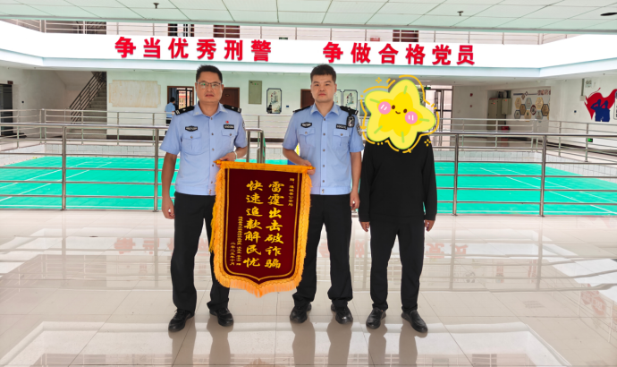 接警后,值班民警立即赶赴现场。一方面安抚叶女士的情绪,引导其细致回忆交易过程及卖家体貌特征;另一方面根据店铺提供的信息快速联系卖家,向其详细说明情况。卖家了解原委后积极配合,当场将项链回收款交还给叶女士。从接警到问题解决,全程仅用不到半小时。10月15日,叶女士带着一面锦旗送到办案民警手中,激动地说:“本来都急得没头绪了,没想到民警这么快就帮我解决了,真是为民办事的好警察!”