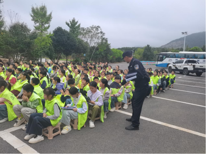 10月13日,崇阳县公安局桂花泉派出所民警在执行日常巡逻任务期间,发现位于雷竹小镇的研学基地正在接待一支近200人的小学生研学团队。借此契机,经与研学团队负责人充分沟通并获同意后,巡逻民警灵活转换角色,现场组织起一场以“禁毒+反诈”为核心内容的安全知识宣讲活动。