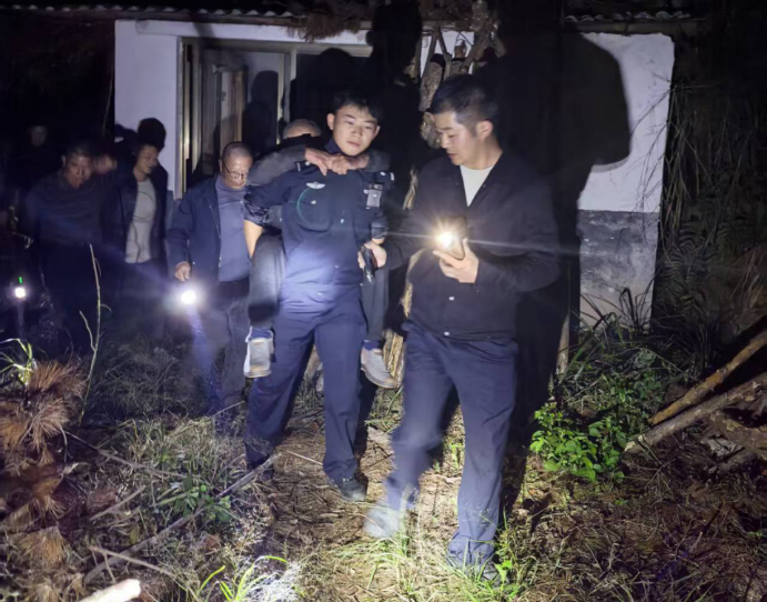 夜幕再次降临,山区气温持续走低,家属们看着漆黑的山林,脸上写满绝望,拉着民警的手哽咽着说:“算了吧,这么冷的天,我们……我们不找了。”但民警们坚决摇头:“只要有一丝希望,我们就绝不会放弃!”关键时刻,派出所教导员黎钢带领所内剩余警力赶来增援,还联动了多名熟悉后山地形的村党员干部,将所有救援力量重新划分为3组,对后山展开“地毯式”二次深挖搜索。