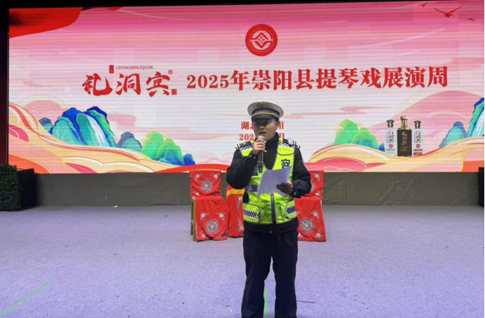 夜幕降临,崇阳县大集广场灯火可亲,悠扬的提琴戏先声夺人,经典的唱腔引得阵阵喝彩,周边的群众闻声聚拢,热闹非凡。11月25日晚,崇阳县公安局交通管理大队以“守住平安路,安享晚年福”为主题,将宣讲台搬到群众“家门口”。