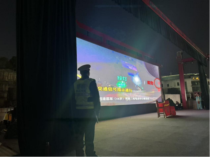 戏台旁,交通安全宣传展板醒目直观;人群中,民警将安全手册逐一分发,在烟火气十足的欢聚氛围里,一场兼具传统韵味与安全干货的宣讲活动温情启幕。