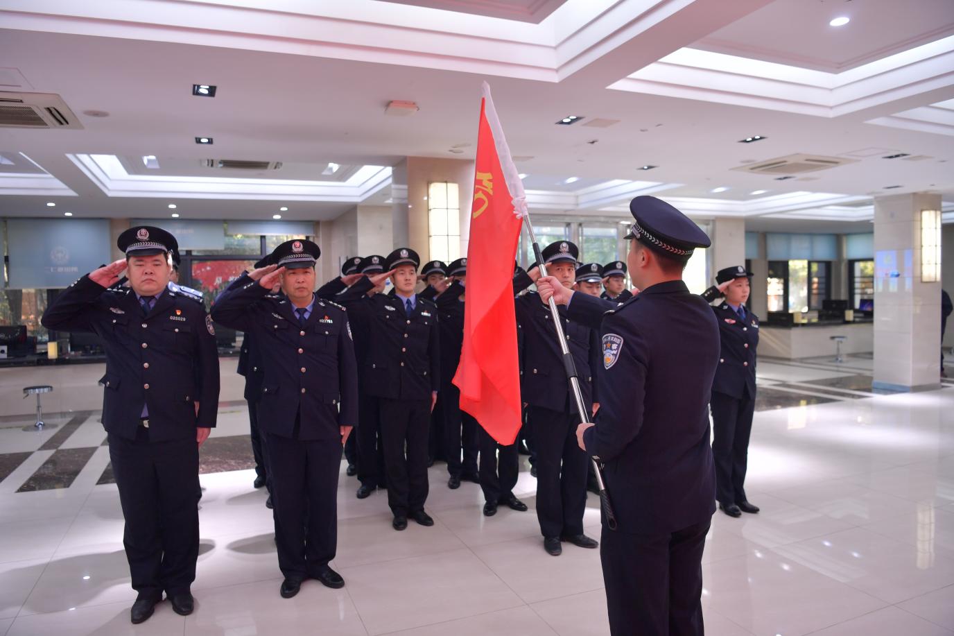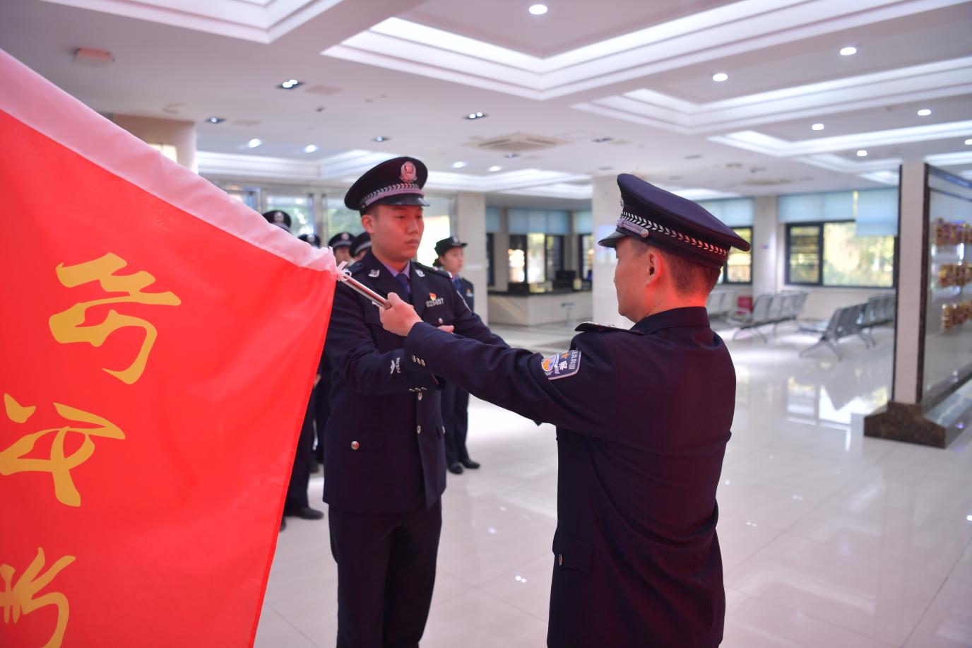 "我宣誓,我是纪汉先锋队队员,向纪汉同志学习,坚决做到对党忠诚,服务人民,执法公正,纪律严明,矢志不渝做党和人民的忠诚卫士!"授旗后,全体队员面向队旗举起右拳,庄严宣誓。