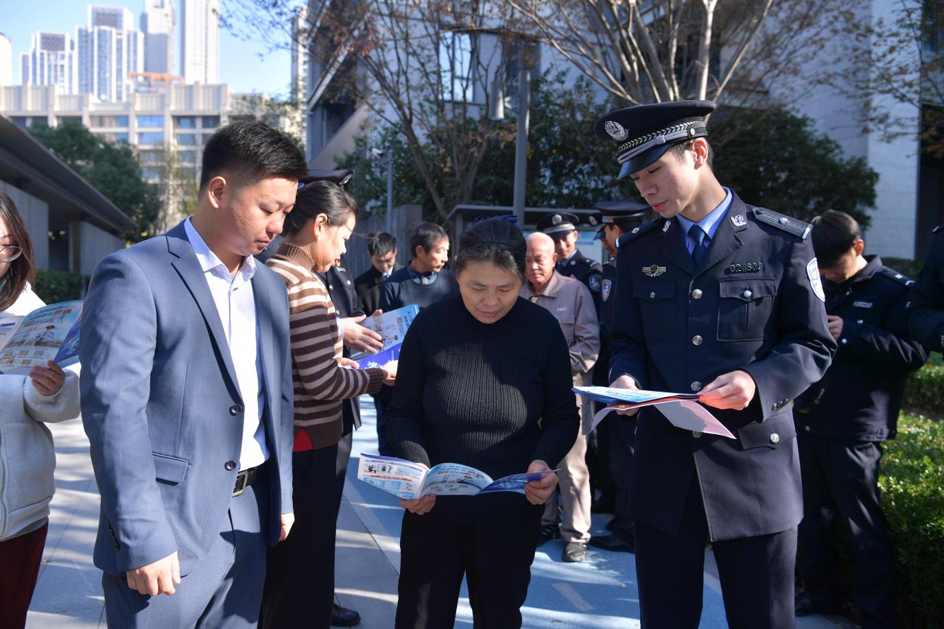 12月4日即是"国家宪法日"。仪式结束后,10余名队员前往二七街派出所辖区内的二七街道分金社区,开展"阳光下的守护"主题法治宣传活动,将纪汉同志"竭诚为民"的精神转化为服务群众的实际行动。