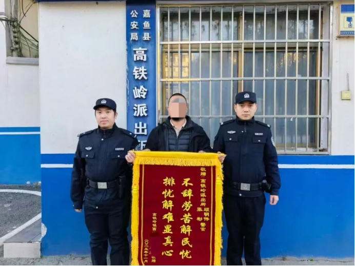 “真的太感谢你们,跑了这么多趟,总算把我们的心头事解决了!”近日,嘉鱼县高铁岭镇西海村村民龙先生,将一面印有“不辞劳苦解民忧,排忧解难显真心”的锦旗,送到高铁岭派出所民警手中。