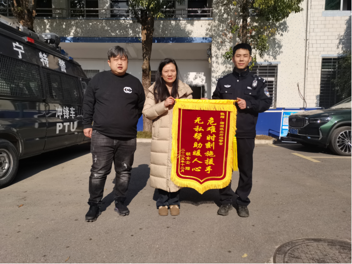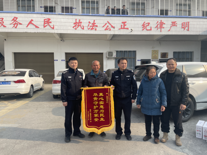 12月18日上午,胡女士家属将一面印有“真心实意为民生,尽责守护万家安”的锦旗送至交通管理大队,对公安民辅警快速响应、高效助力寻回老人的暖心举措,表达最诚挚的感谢。