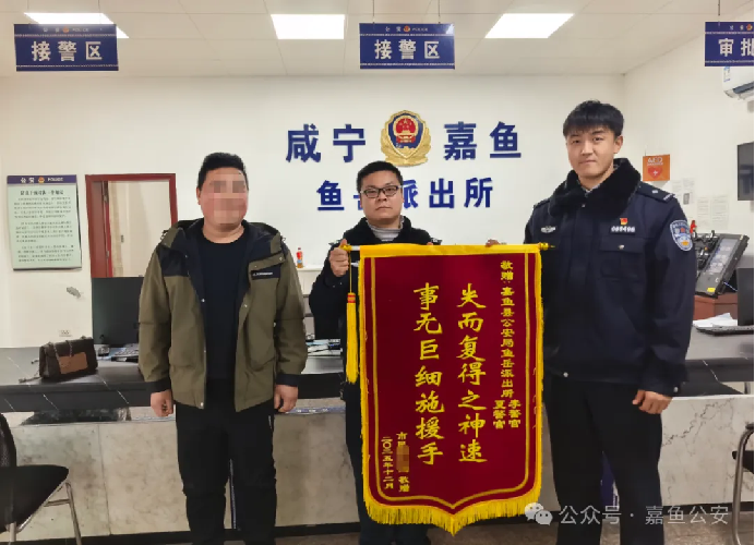 看到失而复得的手表,李某某和妻子激动不已。他们连连向民警道谢:“这么冷的天,你们找了这么久,真的太感谢了!”,向民警送来了“失而复得之神速,事无巨细施援手”的锦旗。