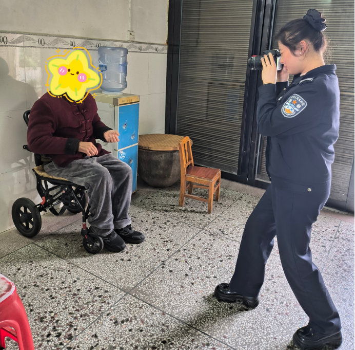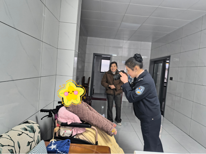 12月26日,隽水派出所户籍辅警龚莎心系特殊群众,主动上门为宝塔社区一名脑瘫幼儿采集证件照片,办理身份证业务。考虑到孩子的特殊情况,龚莎耐心引导、细心拍摄,用专业与温情为这个家庭解决了燃眉之急。