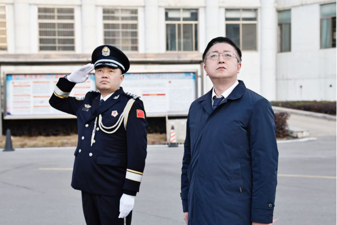 伴随着激昂雄壮的《中国人民警察警歌》,护旗手迈着铿锵有力的步伐护送警旗入场,鲜艳的警旗在朝阳中冉冉升起。全体人员面向警旗庄严敬礼,致敬这面承载着使命与荣光的旗帜。在石亚平同志的带领下,全体民辅警举起右拳,重温入警誓词,铮铮誓言响彻云霄,既是对从警初心的回望,更是对守护平安的庄严承诺。县领导在致辞中充分肯定了嘉鱼公安过去一年在维护社会稳定、保障人民安宁等方面的突出成效,勉励全警以节日为新起点,续写忠诚担当新篇章。