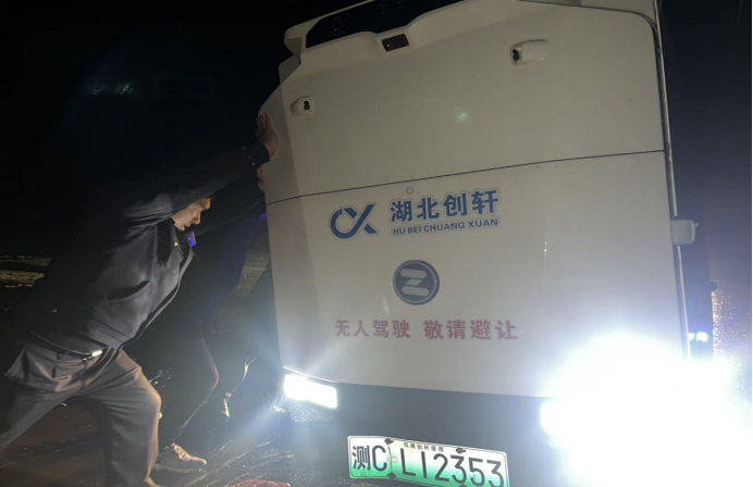 1月20日凌晨,在106国道白骡坳路段,石城派出所民警进行路面巡查时,发现一辆无人快递车因车轮打滑陷入路面,无法移动。因现场无牵引工具,民警当即合力推车,成功助快递车脱困,恢复配送。