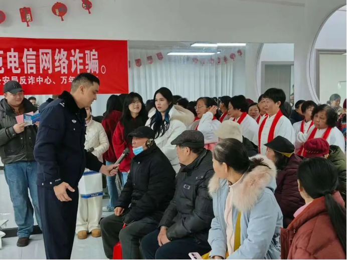 “过了腊八就是年,反诈宣传不打烊。”1月26日腊八节上午,咸宁市公安局反诈中心民警走进万年路社区,开展主题为“提升老年群众防诈意识,防范电信网络诈骗”的反诈宣传活动,以接地气的形式为社区老年群众送上一份特殊的“腊八安全礼”,切实守护老年人的“钱袋子”。