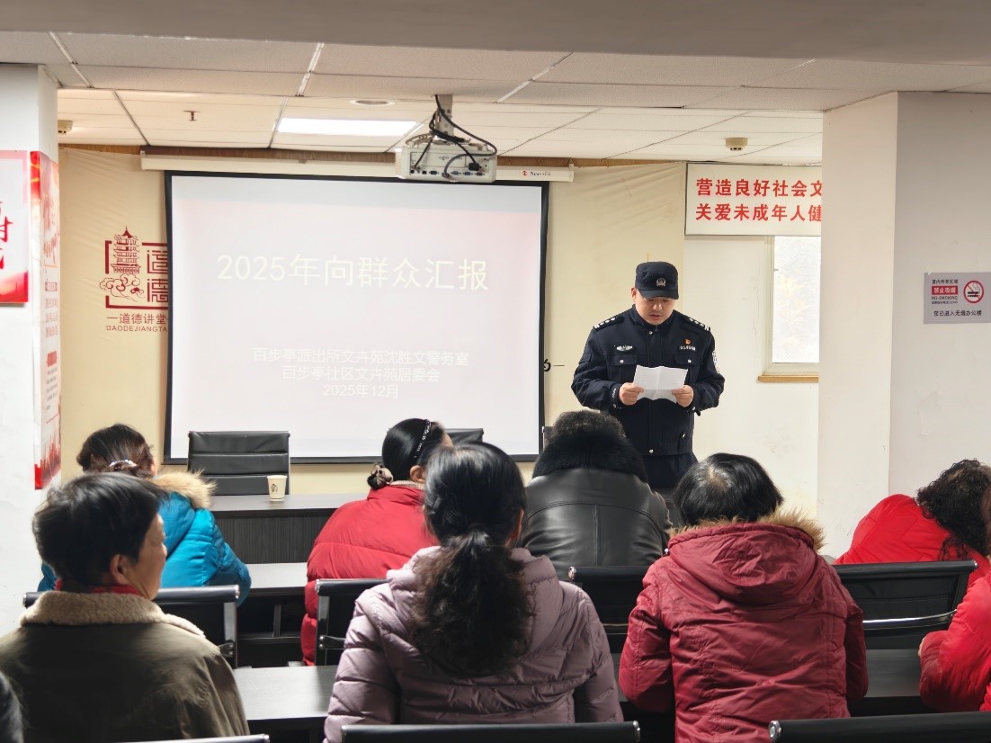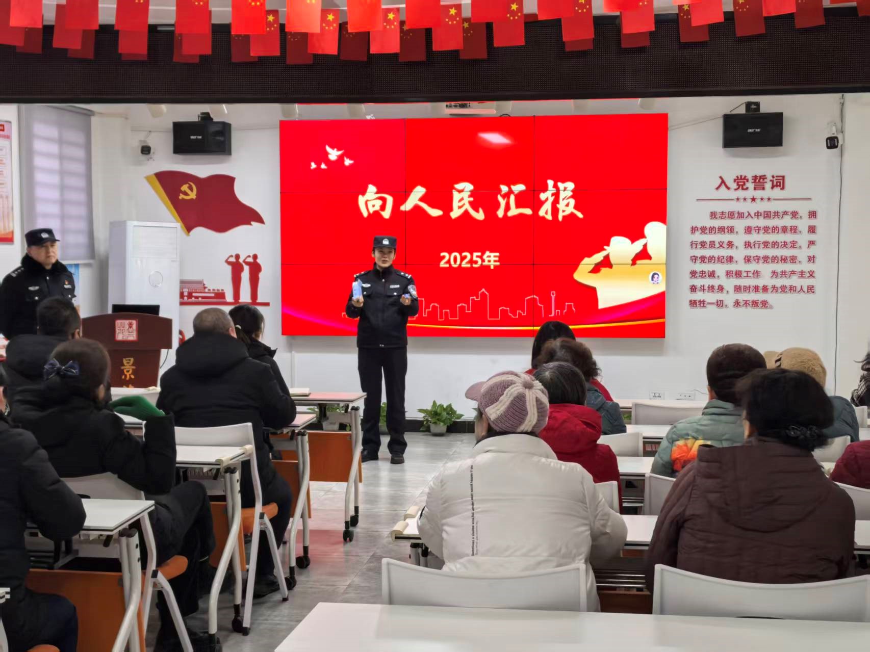 安全,是群众心头最重的牵挂,也是此次汇报活动的重点内容。江岸公安始终坚持“社区警务不止于‘管’,更在于‘帮’”的理念,把解决群众实际困境、守护群众生命财产安全作为工作落脚点,将安全宣传、民生服务融入汇报全过程,做到“汇报即服务、交流即防控”。