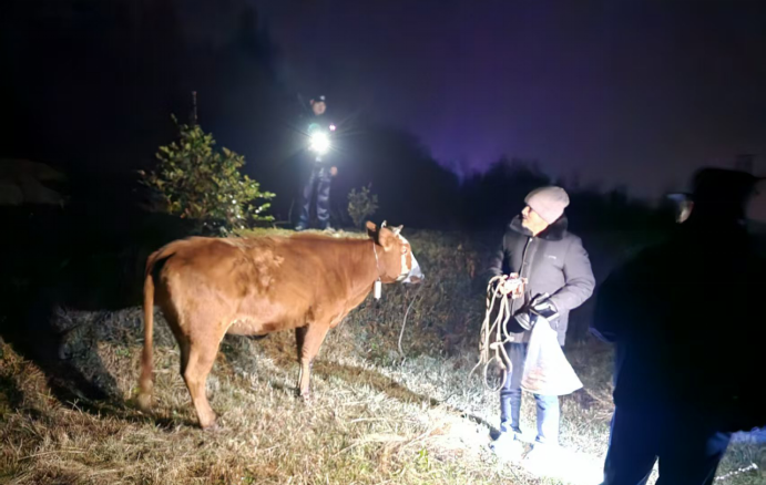 经过近两小时不懈搜寻,民辅警终于在一处偏僻山坳中找到三头黄牛。大家默契配合,形成“口袋阵”慢慢靠近,顺利将牛控制,并安全护送至附近安全区域,交还到老人手中。看到失而复得的黄牛,老人激动地紧握民警双手,连声道谢,眼中满是感激。