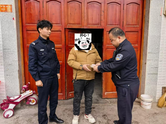 2月8日,民警第一时间将好消息告知老人。考虑到老人年事已高、行动不便,2月9日下午,民辅警专程驱车将钱包及钱款完好无损送到老人家中,交到亲属手中。