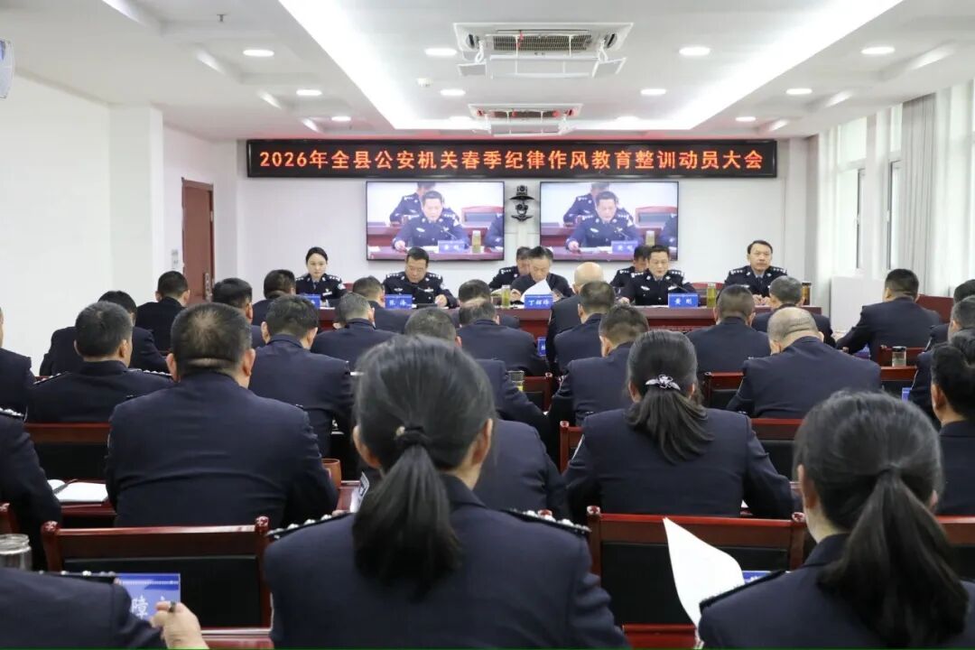 为进一步加强全县公安机关政治建设、作风建设、能力建设,牢固树立和践行正确政绩观,着力锻造过硬公安队伍,切实为全年公安工作高质量发展筑牢思想根基、凝聚奋进力量。2月25日下午,大悟县公安局召开2026年春季纪律作风教育整训暨政治轮训动员部署会议,县委常委、统战部长丁辉锋出席会议并讲话,副县长、公安局长黄刚出席会议并作动员讲话,县局党委副书记、政委张海主持会议。