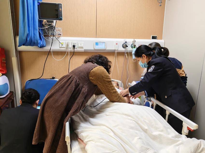 所有手续办结后,周小红向家属详细讲解了证件制发流程与领取方式,又特意俯身到病床边,向王爹爹送上了真挚的祝福:“王爹爹,祝您早日康复。”看着民警全程贴心周到的服务,王爹爹的家属握着周小红的手连连道谢:“没想到大过年的你们还能专程上门服务,真是太暖心了!”