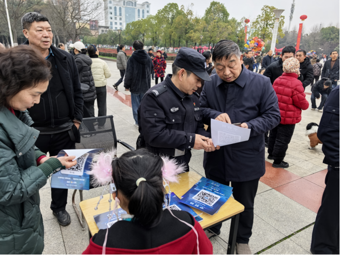守护平安不缺位,便民服务暖人心。通城公安将服务送到群众身边,执勤间隙,民辅警主动走向人群,推广宣传“宁好码”警民服务平台,手把手指导市民扫码注册、操作使用。