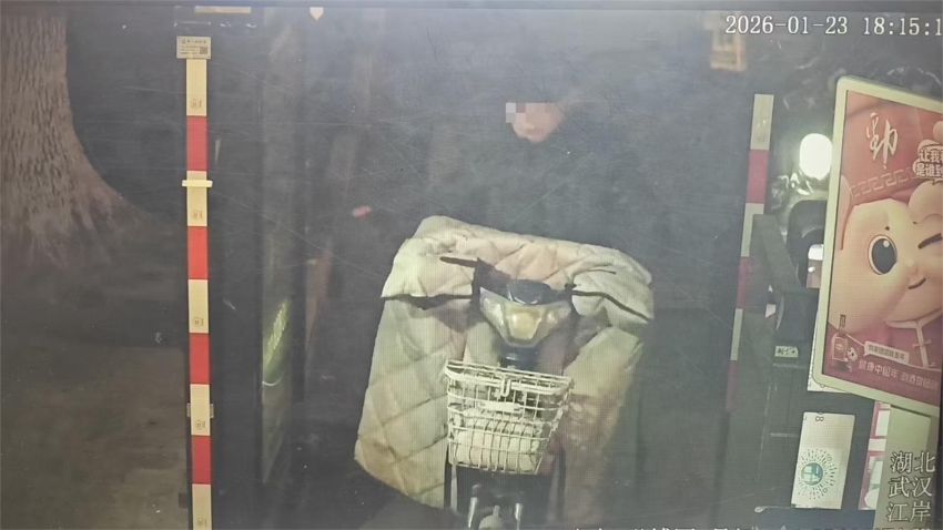 百步亭所民警张创、石柏林带领辅警胡可、王宇翔调看视频发现,1月23日18时许,一名头戴黑色帽子的男子溜达到架空层,四下张望后,撬开车锁,骑上车消失在夜色中。