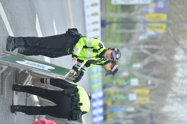 赛事当天,在起跑仪式核心区域外围设置5个远端分流路口和多个安检通道,引导选手和观众合理分流;执勤交警全员在岗,在各个路口耐心疏导交通,为群众指引绕行路线。“师傅,前面赛道封闭了,您要去的地方得从这边绕行,不耽误事儿。”在中山大道一个路口,执勤交警正耐心地为一位骑行的小哥指路,小哥连声道谢,随后快速离开。
