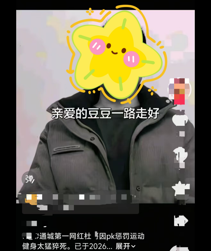 3月25日14时许,违法行为人吴某某为追求娱乐效果,在其个人抖音账号发布虚假视频。视频配文“亲爱的豆豆一路走好”,并捏造“通城第一网红杜*因PK惩罚运动太猛猝死,于2026年3月25日上山”的文案。