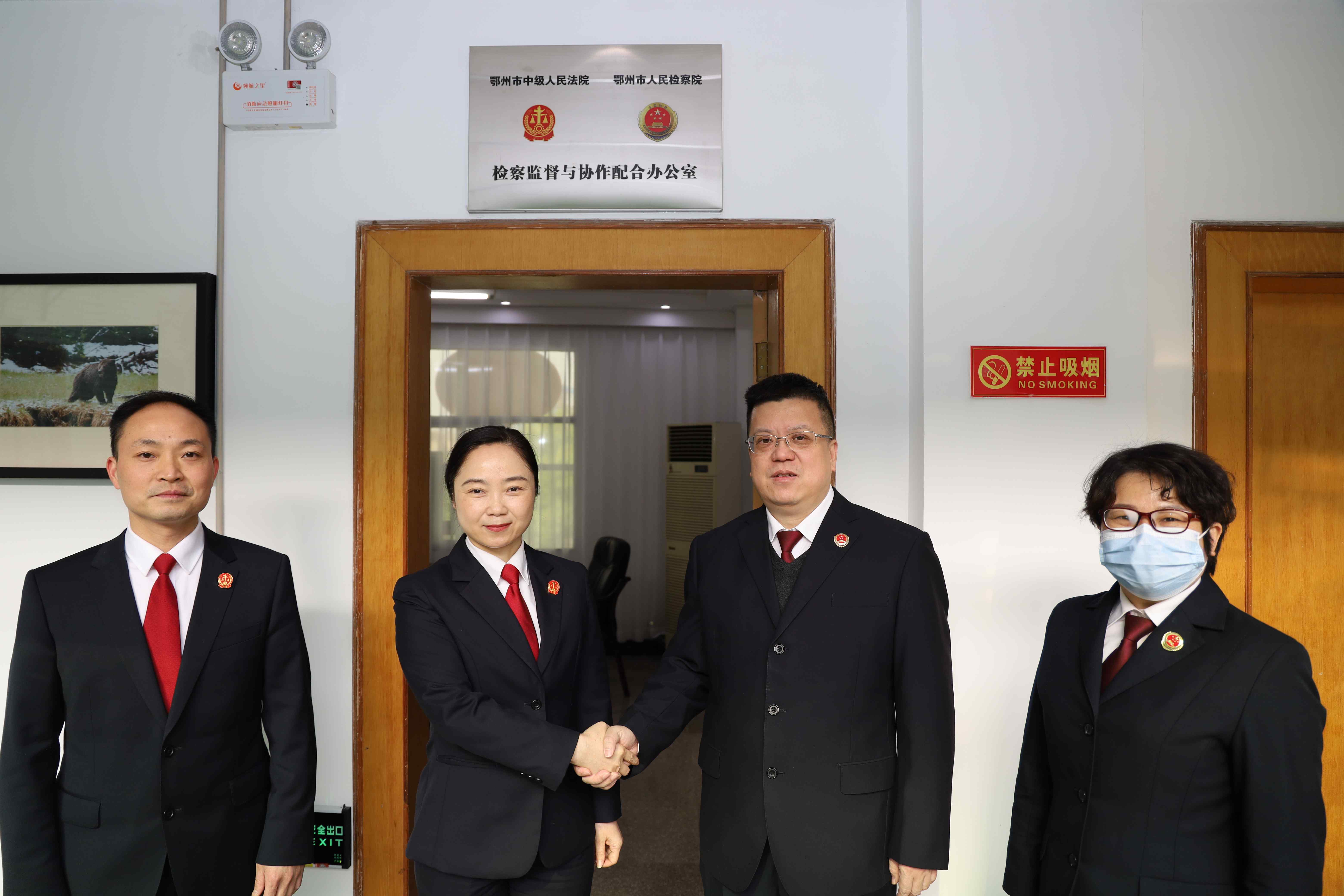 鄂州市法院党组书记、院长陈旗,鄂州市检察院党组书记、检察长闫利国出席活动,并就强化法律监督、推进协作配合、规范使用办公室等方面进行了交流探讨。