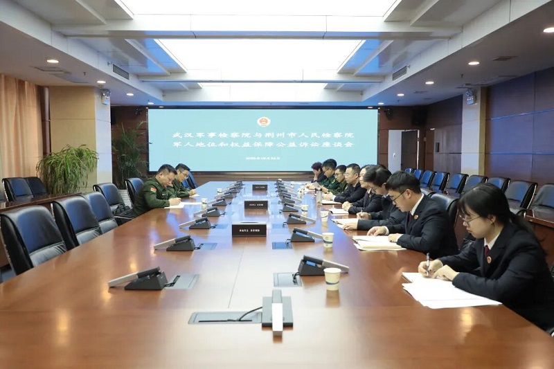 10月24日,荆州市检察院联合武汉军事检察院组织召开军人地位和权益保障公益诉讼座谈会,邀请荆州军分区、荆州区退役军人事务局、驻地部队等单位共商协作。