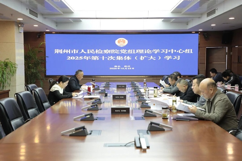 10月23日,荆州市人民检察院党组理论学习中心组召开2025年第十次集体(扩大)学习,围绕《习近平谈治国理政》第五卷开展集体学习研讨。该院党组书记、代理检察长王莉主持并讲话。她强调,要系统把握党的创新理论发展脉络,将第五卷与前一至四卷贯通学习,切实把学习成果转化为高质效检察履职的实际成效,为服务中国式现代化荆州篇章贡献检察力量。