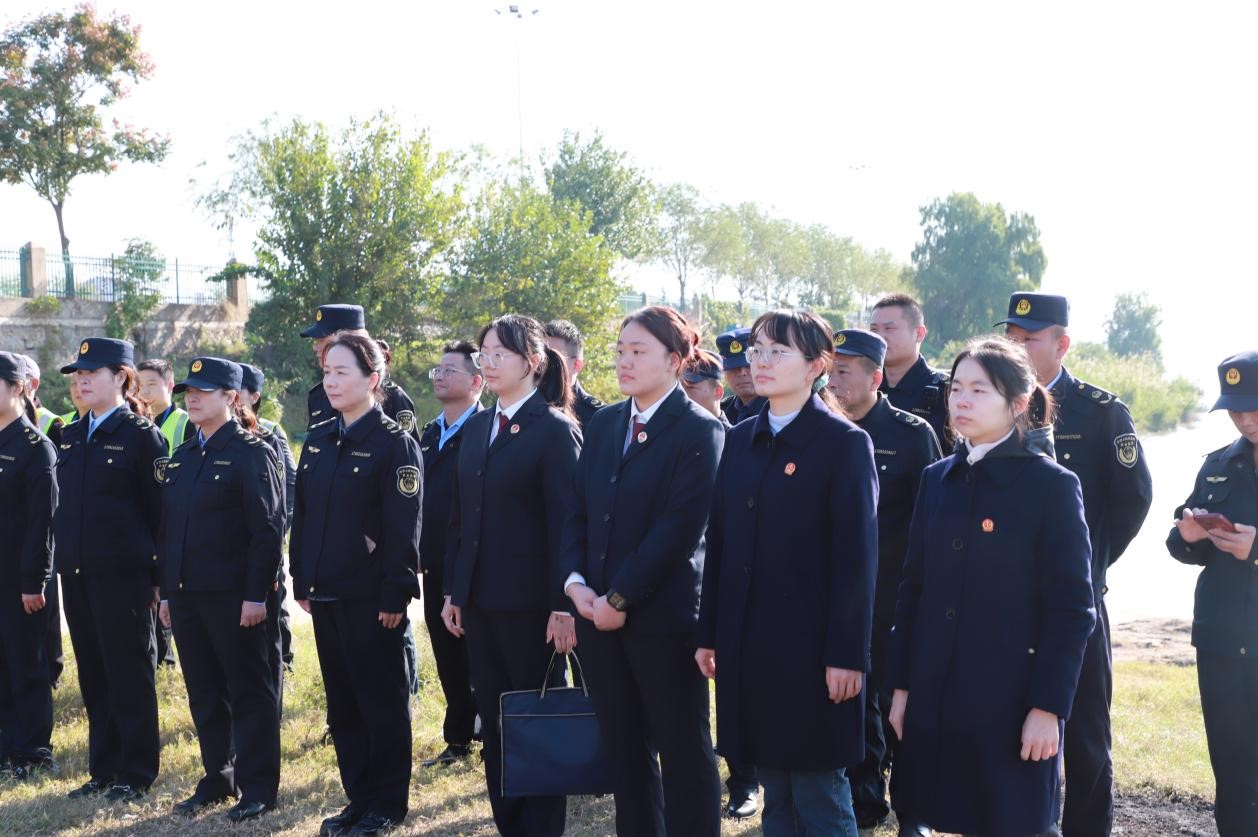 此次活动中,黄州区人民法院秉持“司法服务生态保护一线”理念,将法治职能与生态实践深度融合:在汽渡码头上下游岸线,干警们与其他参与单位一道,手持工具清理沿岸垃圾,对塑料瓶、废弃渔网等污染物进行分类归集与集中转运,从源头减少江岸污染对江豚栖息地的影响;在重点江段联合巡查环节,干警们充分发挥法律专业优势,针对巡查中发现的非法捕捞风险(如疑似违规渔具放置点)、栖息地破坏隐患(如岸边工程废料堆积)等问题,结合《长江保护法》《野生动物保护法》相关条款,解读非法捕捞、破坏水生生物栖息地的法律后果,精准回应生态保护中的法治需求,引导公众树立“生态保护有法可依、违法破坏必受追究”的意识。