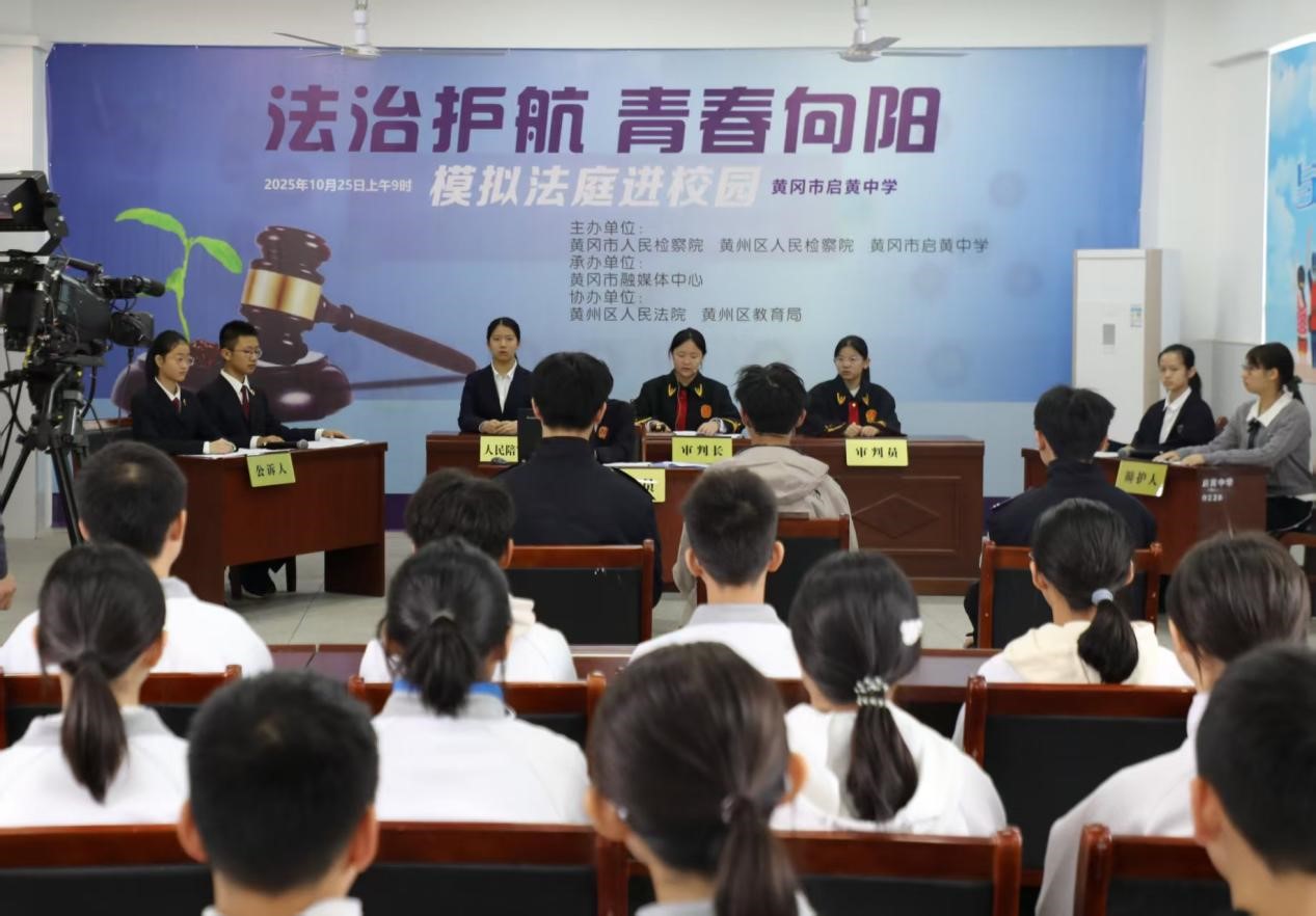 为深入推进青少年法治宣传教育,切实增强未成年人法治观念与自我保护意识,营造“尊法、学法、守法、用法”的校园氛围。10月25日上午,黄州区人民法院参加黄州区人民检察院在黄冈市启黄中学开展以“法治护航,青春向阳”为主题的模拟法庭直播活动,为现场师生们带来一堂“沉浸式”的法治教育课。