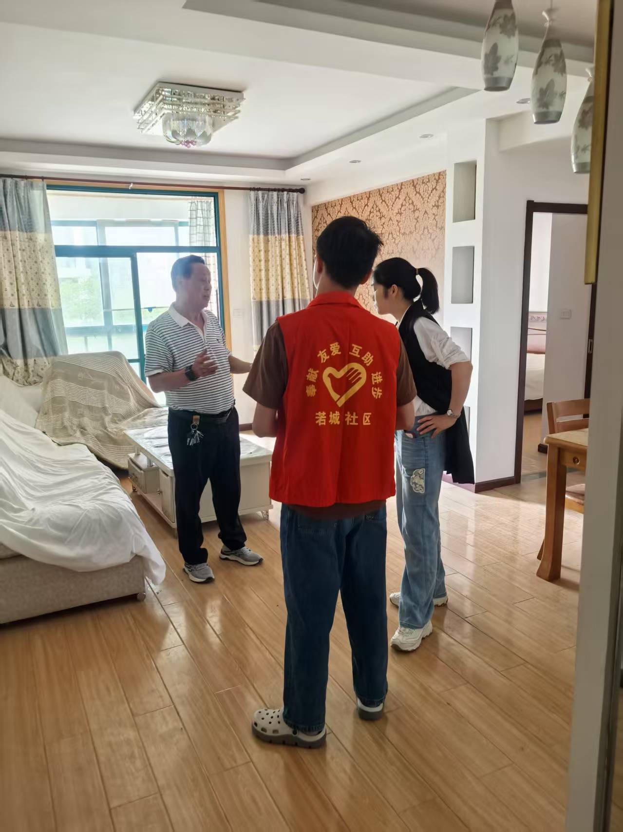 图4 若城社区、社区法律顾问上门调查东方佳园小区业主家中漏水情况