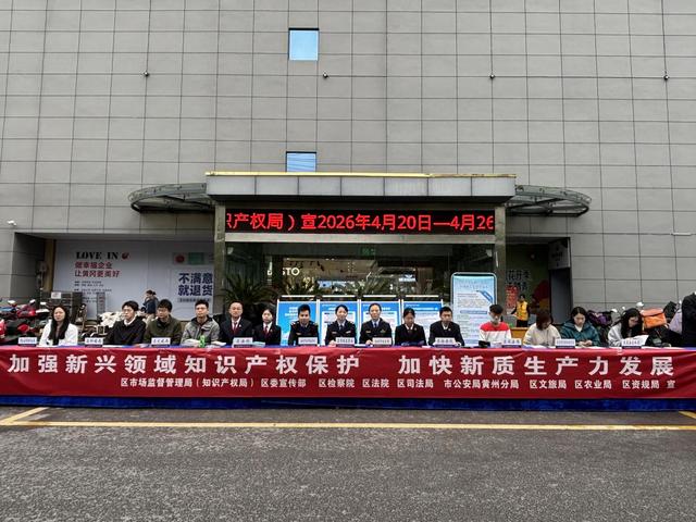 4月21日,黄州区法院继续发力,联合区市场监督管理局等多家单位,在黄商购物中心广场开展以“加强新兴领域知识产权保护 加快新质生产力发展”为主题的普法宣传活动,将普法课堂搬到群众最常逛的商场里,让保护创新的意识融入烟火日常。