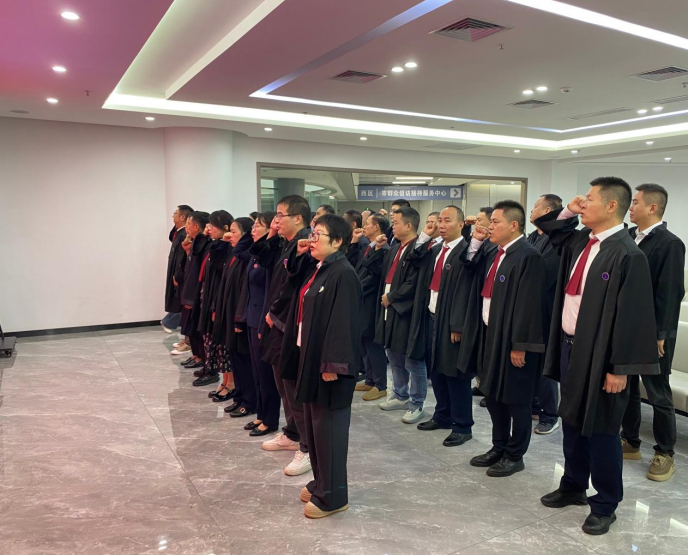 上午8时30分,全体律师身着律师袍入场。活动在庄严的重温入党誓词仪式中开始——由李晓律师领誓,党员律师高举右拳,坚定表达跟党走、忠诚履职的决心。随后,毕明海律师带领全体律师宣读律师誓词,进一步增强职业使命感。