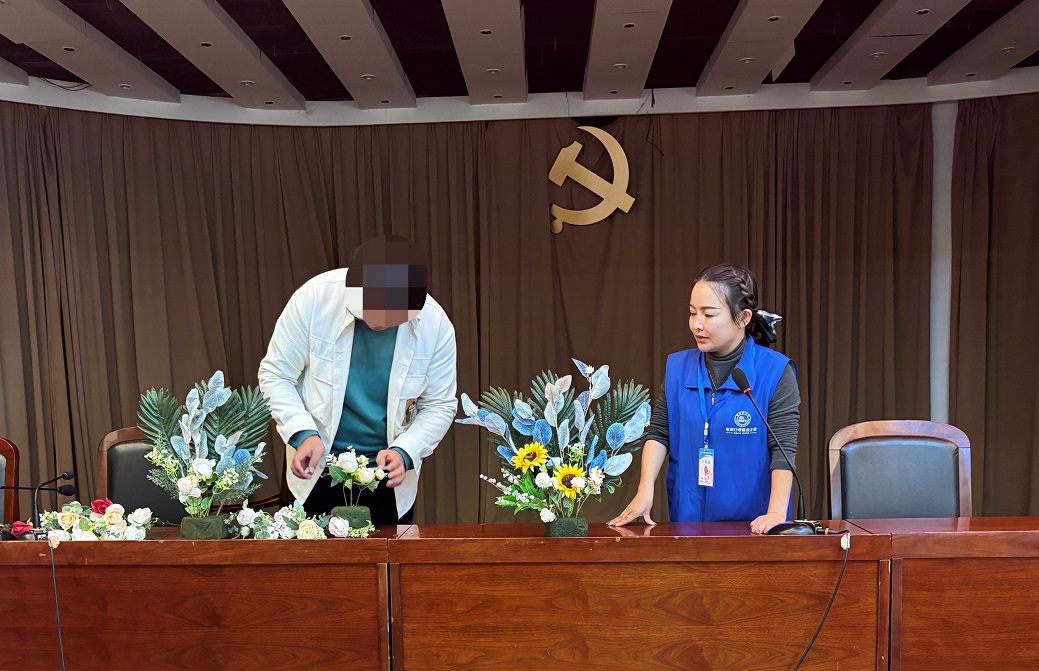 随后的家政服务课程则涵盖了家庭艺术插花等内容,营造出轻松温馨的学习氛围。讲师从花材识别、色彩搭配到造型技巧逐步讲解,并现场示范插花步骤。社区矫正对象兴趣盎然,在动手实践中发挥创意,将一朵朵零散的花材组合成一个个独具匠心的插花作品。现场互动频繁,气氛活跃,大家在花香中感受美、创造美,也增强了从事家政服务的就业信心。