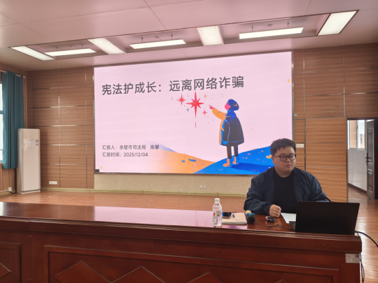 来自蒲圻司法所的法治副校长走进营里小学,开展“宪法守护成长:远离网络诈骗”主题宣讲。课堂上,法治副校长以互动提问开篇,结合未成年人网络诈骗典型案例,拆解“免费送皮肤”“兼职引流”等常见骗局,解读宪法中公民财产权、隐私权的保护条款。同时创编防骗口诀并搭配趣味动作教学,组织学生庄严宣誓,让宪法意识与防骗技能同步扎根,为青少年健康成长撑起法治“保护伞”。