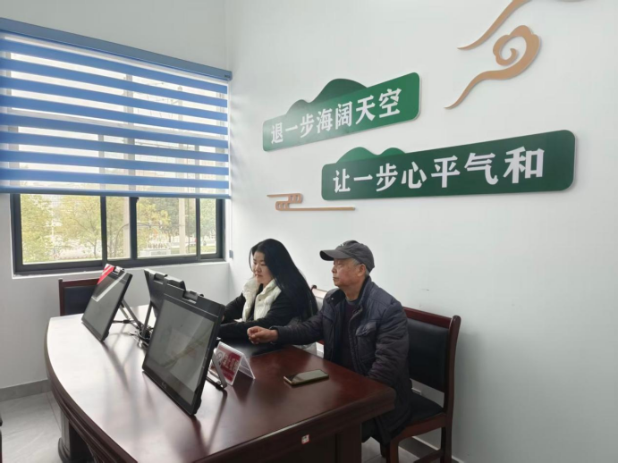 在通城县人民调解中心的视频调解室内,一块电子屏幕正连接着千里之外的江苏徐州。调解员陈老和调解员小方对着屏幕,耐心倾听一位因赶工无法到场的农民工的诉求。声音透过网络传来,有些许嘈杂,但陈老的神情始终专注。这是通城县司法局创新运用“远程视频调解”化解纠纷的日常一幕,而屏幕前这位熟练运用数字技术、循循善诱的老者,还有另一重身份——一名返聘的退休老干部。