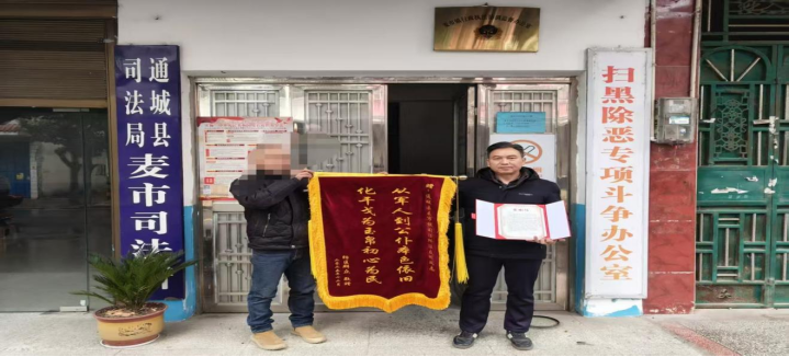 一面鲜艳的锦旗,一封真挚的感谢信,承载着沉甸甸的信任与肯定,通城县麦市镇村民葛某将一面印有“从军人到公仆本色依旧,化干戈为玉帛初心为民”的锦旗及感谢信送到了麦市司法所。正是在汪所长的耐心调解和不懈努力下,葛家这起纠缠了28年的房产继承纠纷终于画上了圆满的句号,一家人多年的隔阂与怨气也得以烟消云散。
