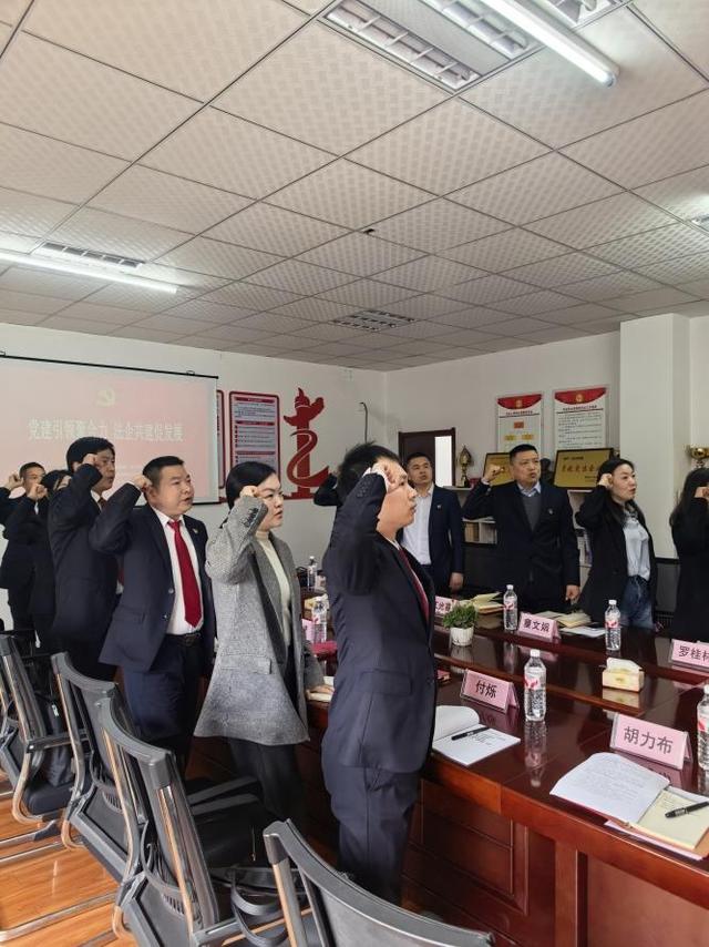 在庄严的党旗下,全体党员在团风法院第一党支部委员、审管办副主任付烁同志的带领下,重温入党誓词,坚定理想信念,牢记初心使命。