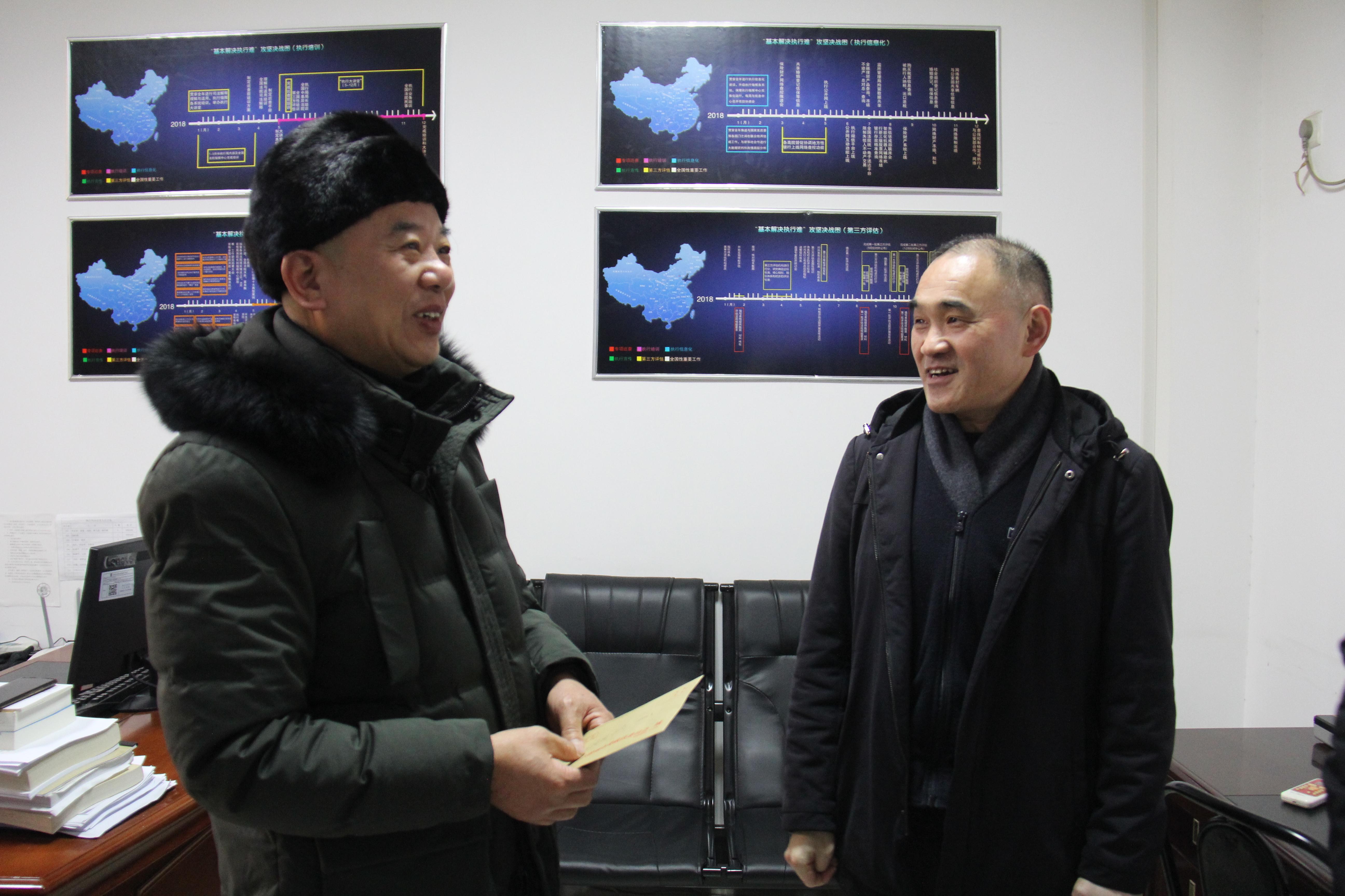 慰问组一行先后看望了法警大队胡军、执行局赵松燕和审委会陈悦,对他们带病坚守岗位的辛苦付出表示感谢,并送上了慰问金和新春祝福。