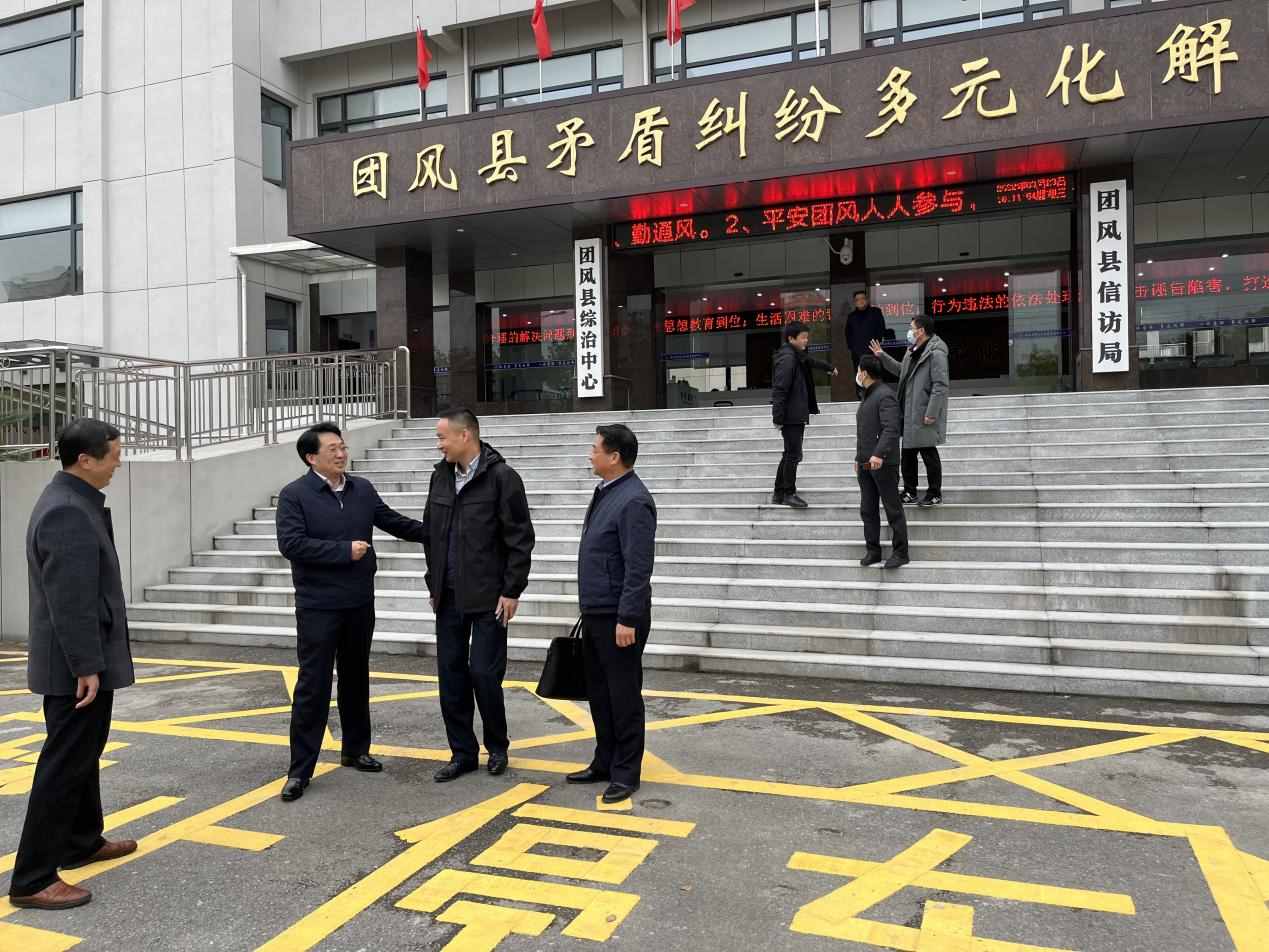 3月23日下午,武昌区委副书记、区委政法委书记陈鹏,一级调研员金光伟,区委政法委常务副书记李顺洪,区委办公室副主任、区信访局局长江纪武,区委政法委副书记安继尧一行到团风县矛盾纠纷多元化解中心考察学习。