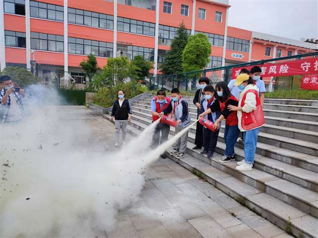 应急演练后,社区辅警和志愿者进行了灭火器实际操作学习,在大家的指导和协助下,同学们亲身体验了如何用灭火器灭火,拔下火栓,抓着喷嘴,对准火源根部喷射,熄灭火源,同学们都能做到正确使用消防器,且动作十分规范。