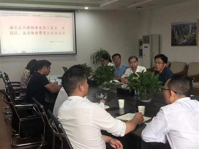 湖北从天律师事务所把下基层、进园区活动一步步做深、做实,结合律师行业特点形成“下基层、察民情、解民忧、暖民心”的长效机制,继续为园区企业提供坚强有力的法律保障,帮助企业提高合规管理能力,强化法律风险防控,助力企业持续健康稳定发展。
