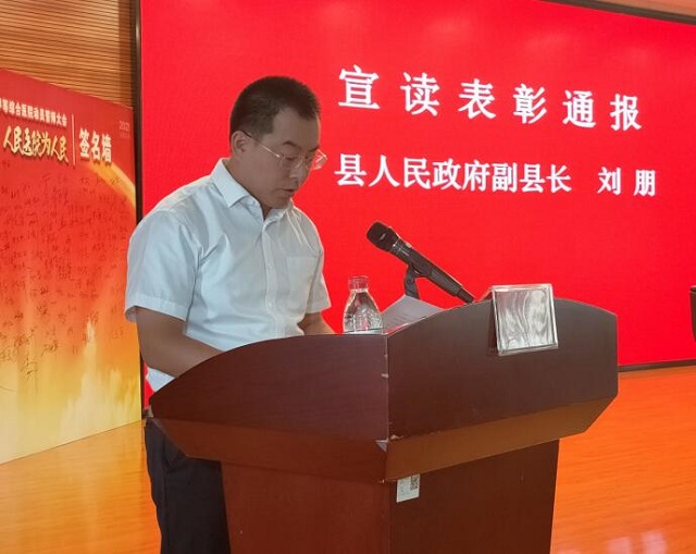 公安县人民政府副县长刘朋宣读《中共公安县卫生健康局党组关于表彰2022 年度公安县“最美健康守护者”的通报》和《中共公安县卫生健康局党组关于表彰党建引领促医德医风提升教育整顿活动优秀单位、优秀科室和医德医风标兵的通报的表彰通报》。
