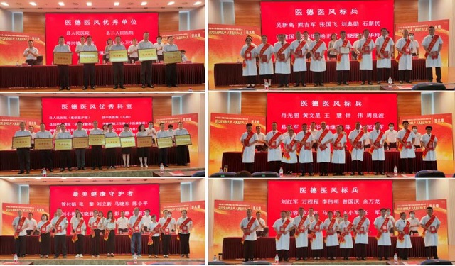 县领导为医德医风标兵、医德医风优秀科室、医德医风优秀单位和“最美健康守护者”颁奖。